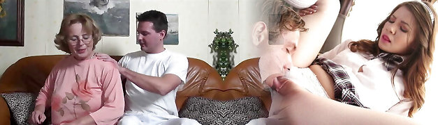 The stepmother helped to loosen tension and jacked off to him and for this she got a dick in anal
