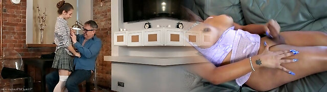 DADDY4K. Dad and young gal hot sex in bed culminates with..