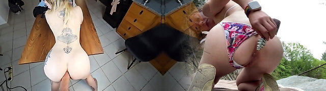 Blonde babe rides dick