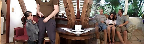 Huge dick and cum in throat for this brunette