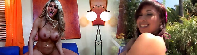 Buxom blonde sexpot with enormous bubble ass is fond of topping huge prick