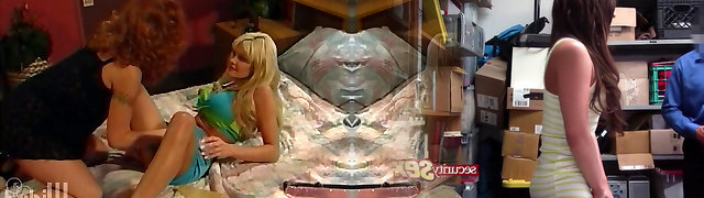 Two chubby lesbians, Melonie and Vanessa Klein, play with a sex toy in g-strings.