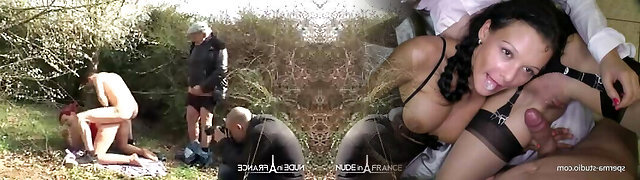 Amateur chubby french redhead analyzed in gangbang outdoor