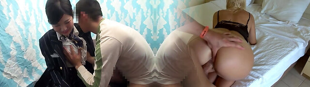 Horny asian cuties receives a hot creampie after awesome bang scene