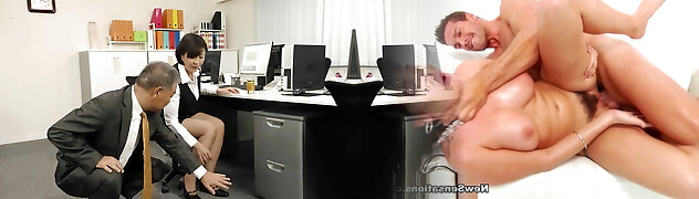 Secretary Katrin Tequila teases her boss and rides his stiff stiffy