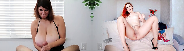 Sexy Huge-titted Redhead Hottie Challenges Her Step-bro Not To Cum While She's Teasing & Pleasing His Boner