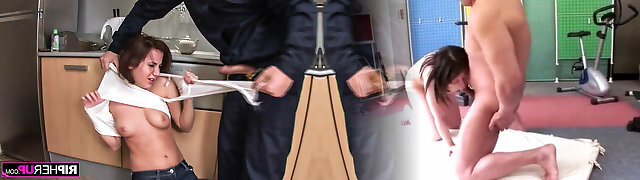 Pretty long haired teen babe fucked on her kitchen table