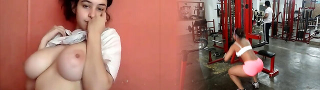 19 year old busty webcam girl with harmless face touches her big natural ti