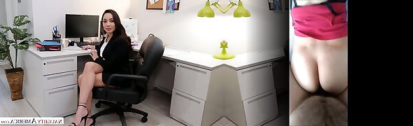 Marvelous office super-bitch in glasses Ivy Lebelle takes fat cock into her giant ass