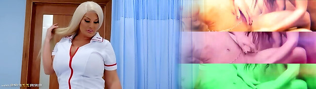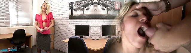 Buxom platinum blonde nurse Julie Cash gets spunk in facehole at the office