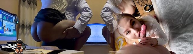Assistant eagerly blows a coworker and takes a hot facial