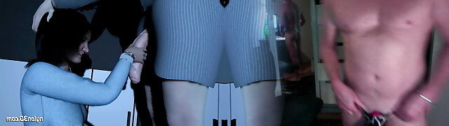 At lunchtime, the boss milks my dick. She wants me to jizz in her panties. Office sex games. Amateur movie.