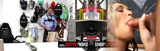 Smallish Shoplifter Fucked Mall Cop to get Out of Trouble