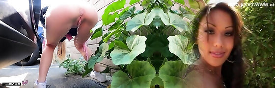 Milf pees outside before being fucked
