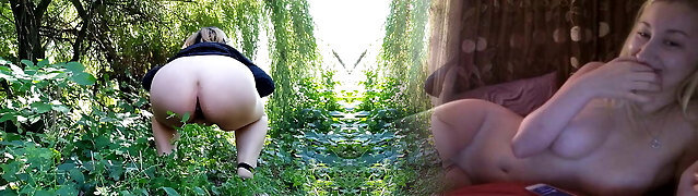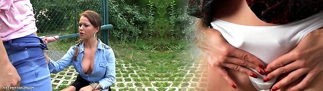Hot blonde PAWG with innate bra-stuffers offers public pissing show and wild sex