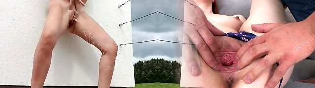 Super-cute lesbo sweeties get sprayed with piss and squirt wet coochies