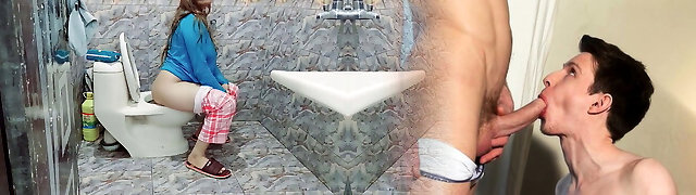 A kinky slut sucks his nut until he pisses down her throat