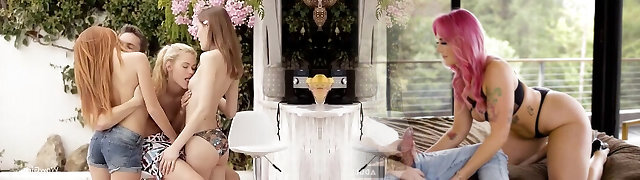 Redhead pounded by a blond she-male