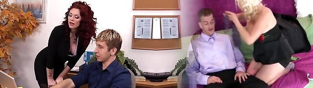 Beautiful crimson hair granny’s passion sex with junior guy