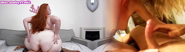 Fat red-haired GILF bouncing on a dick