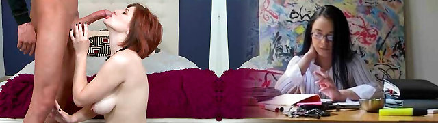 Busty redhead babe demonstrates impressive blowjob skills