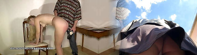 Firm OTK spanking on a chair, hand and belt