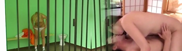 tied the female up with handcuffs and began to rub her pussy