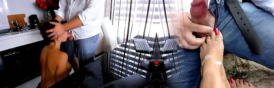 unexperienced giant pecker oral job in kitchen