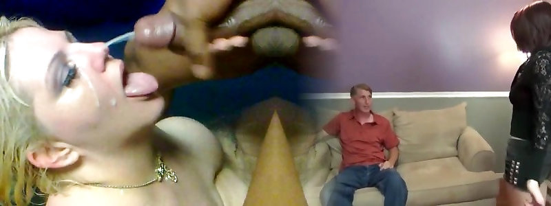 Cuckolds wife with sissy spouse gulps cum of Bbc Bull.
