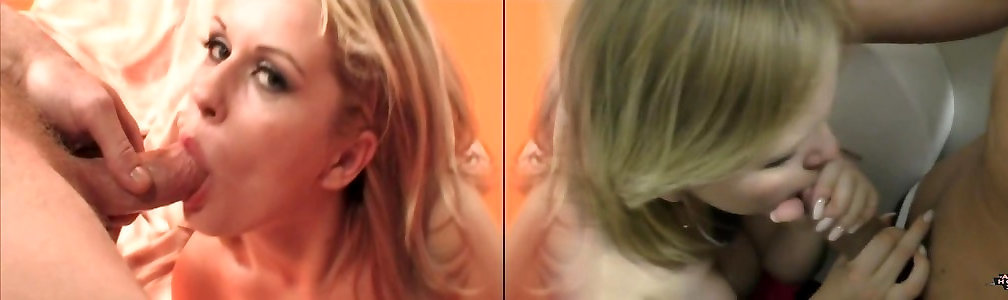 Two dirty talking whores sucking dick, cum in blond&039;s eye, POV