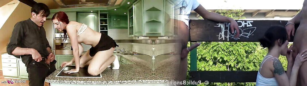 Small Tits Redhead College Girl Michelle Seduce to Fuck by old Guy in the kitchen