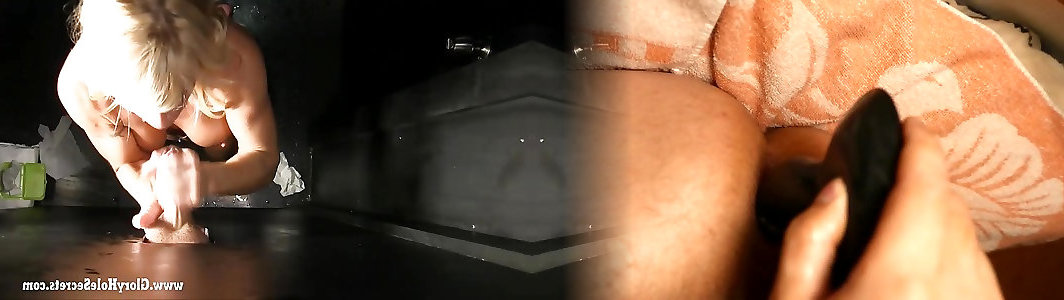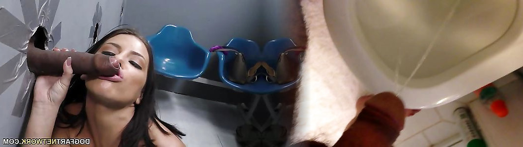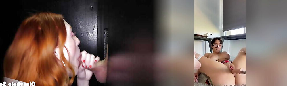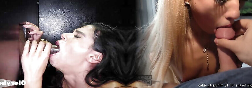 She finds a glory hole and gives a rimjob at the same time