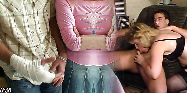 Young blonde wife watches him fucking her skinny mom