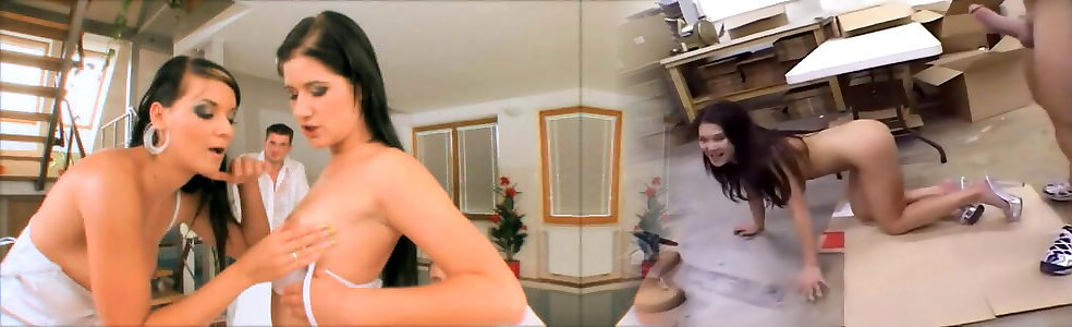 Hot dark haired mechanic sharing two massive shafts with her friend