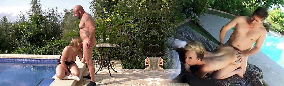Two gorgeous blonde milfs with great tits and asses get fucked by two lucky guys