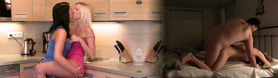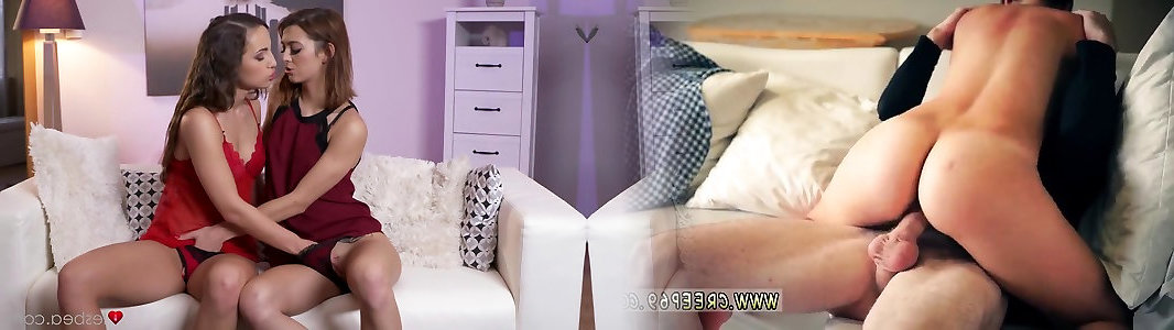 Lesbea Personal black-haired lesbian sweethearts kiss and pound in guest room