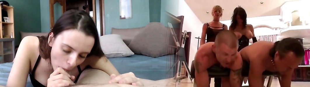 Tiny Dick loser has his cock sucked by 2 hot girls and fucks the 3rd one in the end