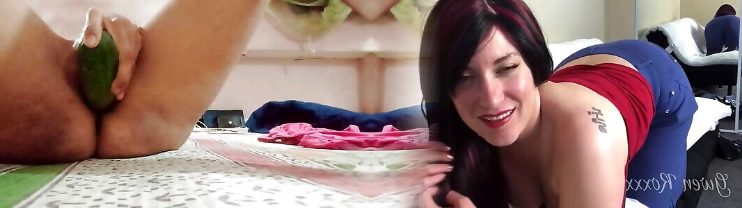 Horny chick enjoys with XL cucumber.