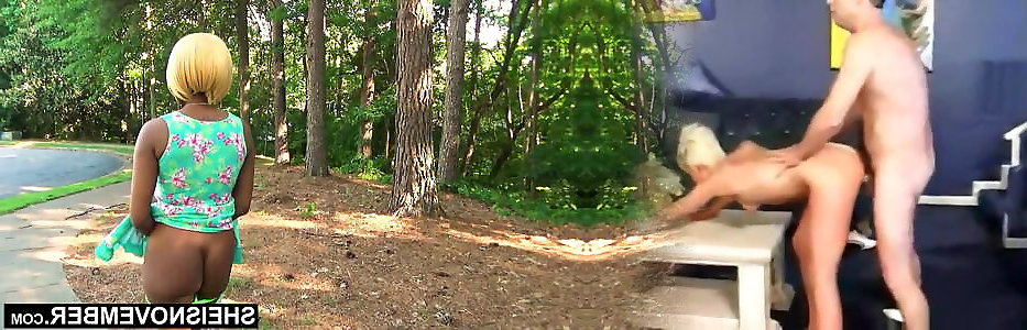 Blondie stunning tart takes a thick ebony hard wood
