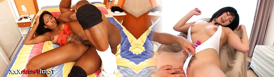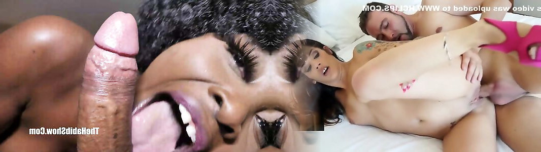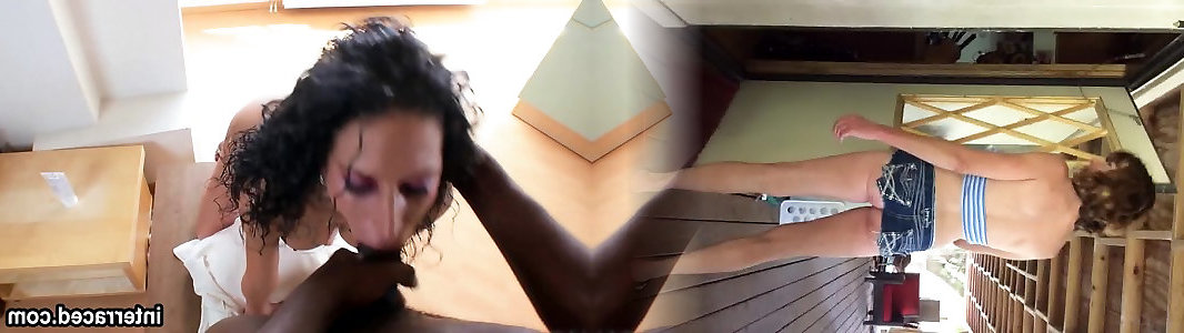 Slim dark-hued honey rides a yam-sized white jizz-shotgun and gets a mouthhole