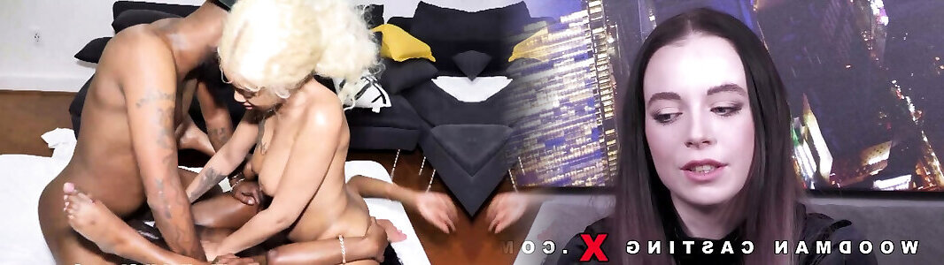 Slim dark-hued honey rides a yam-sized white jizz-shotgun and gets a mouthhole