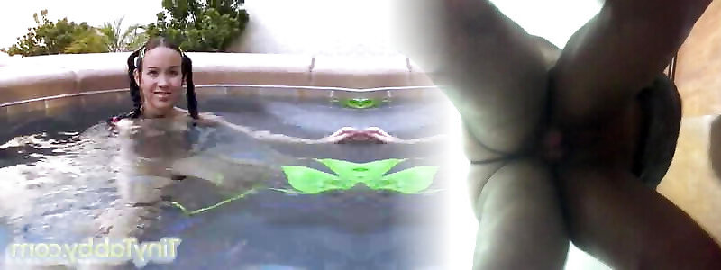 Teen tiny tabby toying her pussy in hot tub