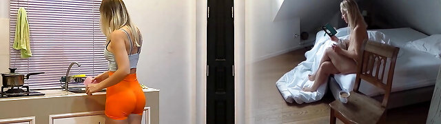Cute blonde Misie loves toying her pussy in the kitchen