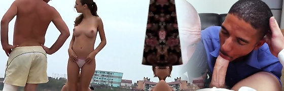 Rock-hard fuck in the butt young girl on the beach