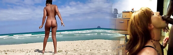 NUDIST BEACH BLOWJOB: I show my hard man rod to a bitch that asks me for a blowjob and jizz in her mouth.