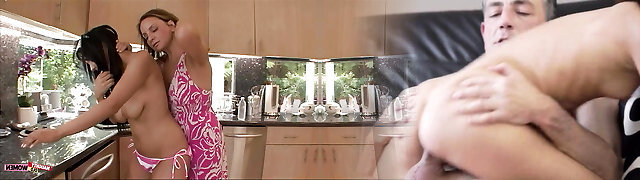 Lily Glee and Laney Grey tag squad a cock