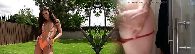 Ass cumshot for a super-steamy brunette in a bikini