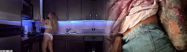 Cutie Massages Her Ass With Oil Spouse Humped Her In The Kitchen In Red Shorts