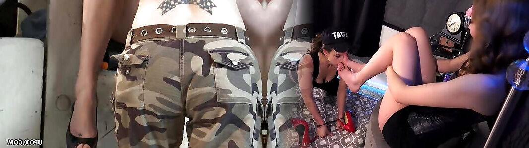 heiße lesbische schönheiten werden bei einer fußshow von einem großen dildo gefickt