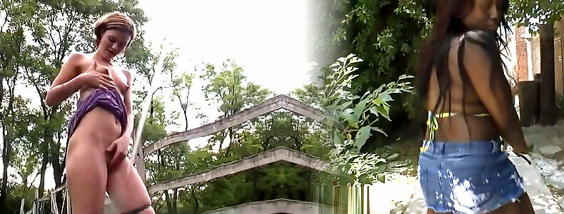 adolescentes de big tits asia asa de pelo negro y rubia hacen trío ffm al aire libre